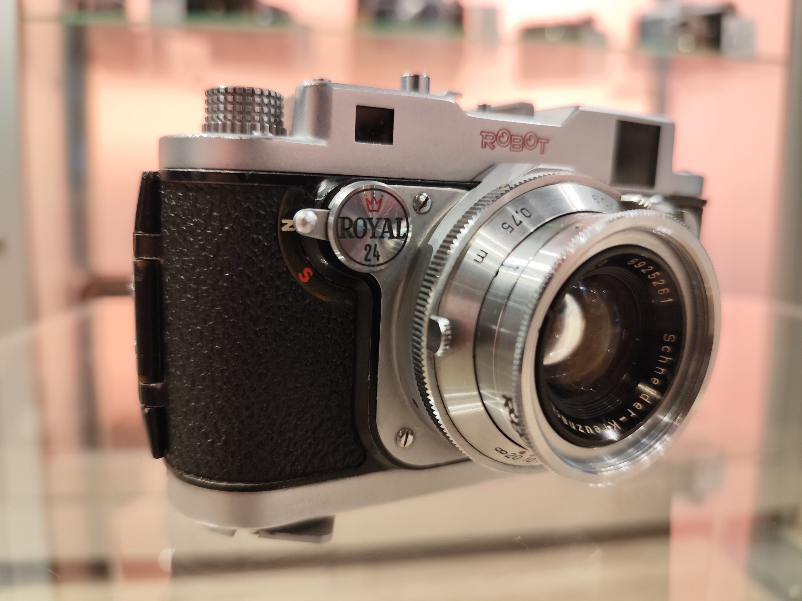Die Robot Royal 24 ist ein außergewöhnliches Stück analoger Fototechnik, das Mitte des 20. Jahrhunderts von der deutschen Firma Robot (Otto Berning & Co., Düsseldorf) entwickelt wurde. Diese herausragende Messsucherkamera nutzt Standard-35 mm-Film und erzeugt ungewohnte, quadratische Bilder im Format 24 × 24 mm – ein spannender visueller Stil, der mehr Aufnahmen pro Filmrolle ermöglicht als klassische Formate.